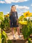 Это очаровательное платье для девочек — удобный и стильный вариант, который прекрасно подходит для повседневной носки. Полуприлегающий силуэт создает гармоничный образ, обеспечивая комфорт и свободу движений. Круглая горловина добавляет классический акцент, а короткие рукава делают модель универсальной для любого сезона. Эластичная тесьма внутри пояса создаёт лёгкую сборку, придавая платью изящную форму и подчеркивая силуэт. Низ изделия обработан швом вподгибку, что обеспечивает аккуратный вид и долговечность.Выполненное из хлопковой кулирки платье мягкое, воздухопроницаемое и приятное к телу, гарантируя комфорт на протяжении всего дня. Отличный вариант для повседневного гардероба маленьких ценительниц стиля!
