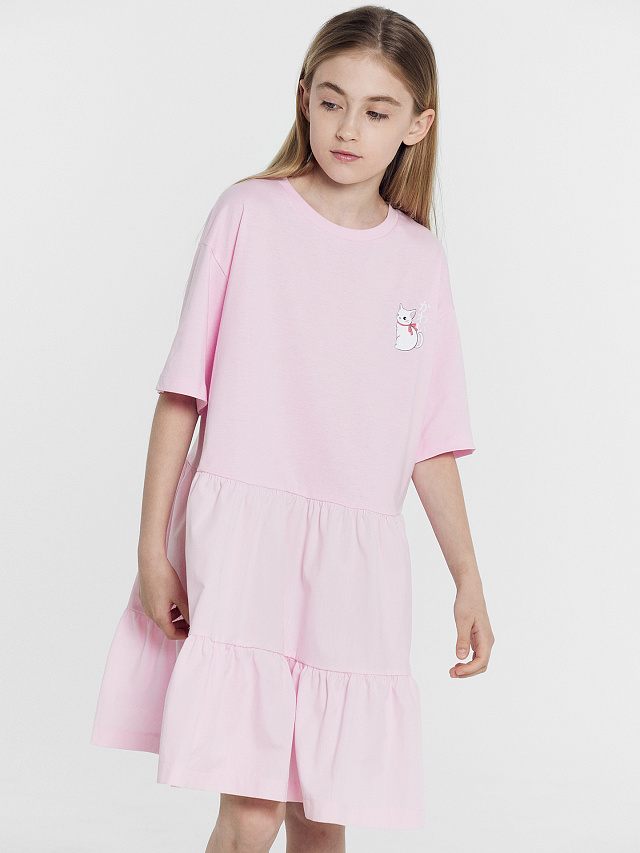 Платье для девочек светло-розовое с печатью