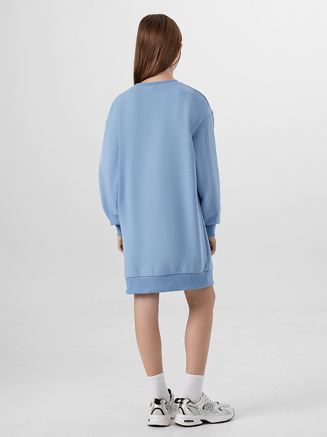 Удобное платье свободного силуэта создано для повседневного комфорта и активного образа жизни. Слегка спущенная линия плеч обеспечивает свободу движений, а длинные рукава с отрезными манжетами из мягкой рибаны аккуратно облегают запястья.