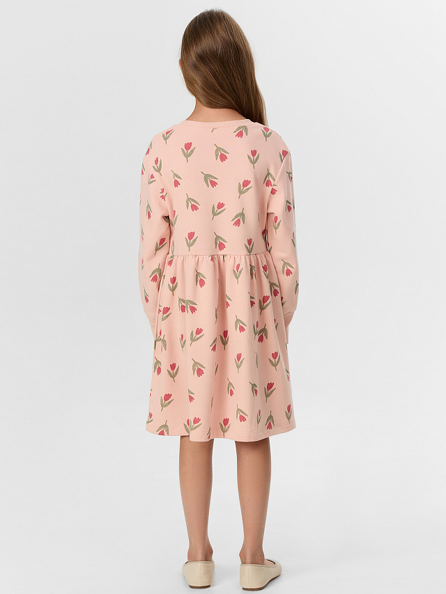 Платье для девочки с цветочным принтом выполнено в нежном розовом оттенке с рисунком тюльпанов, что создает ощущение весенней свежести. Эта модель идеально подойдет для праздничных мероприятий, прогулок или повседневной носки. Если вы ищете, где купить детское платье с качественной отделкой и вниманием к деталям, этот вариант станет прекрасным решением.