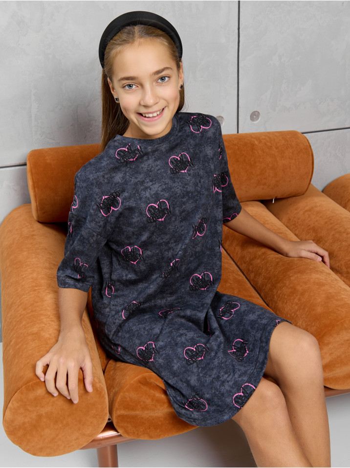 Платье домашнее "Принт" Графит девочка