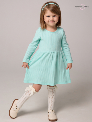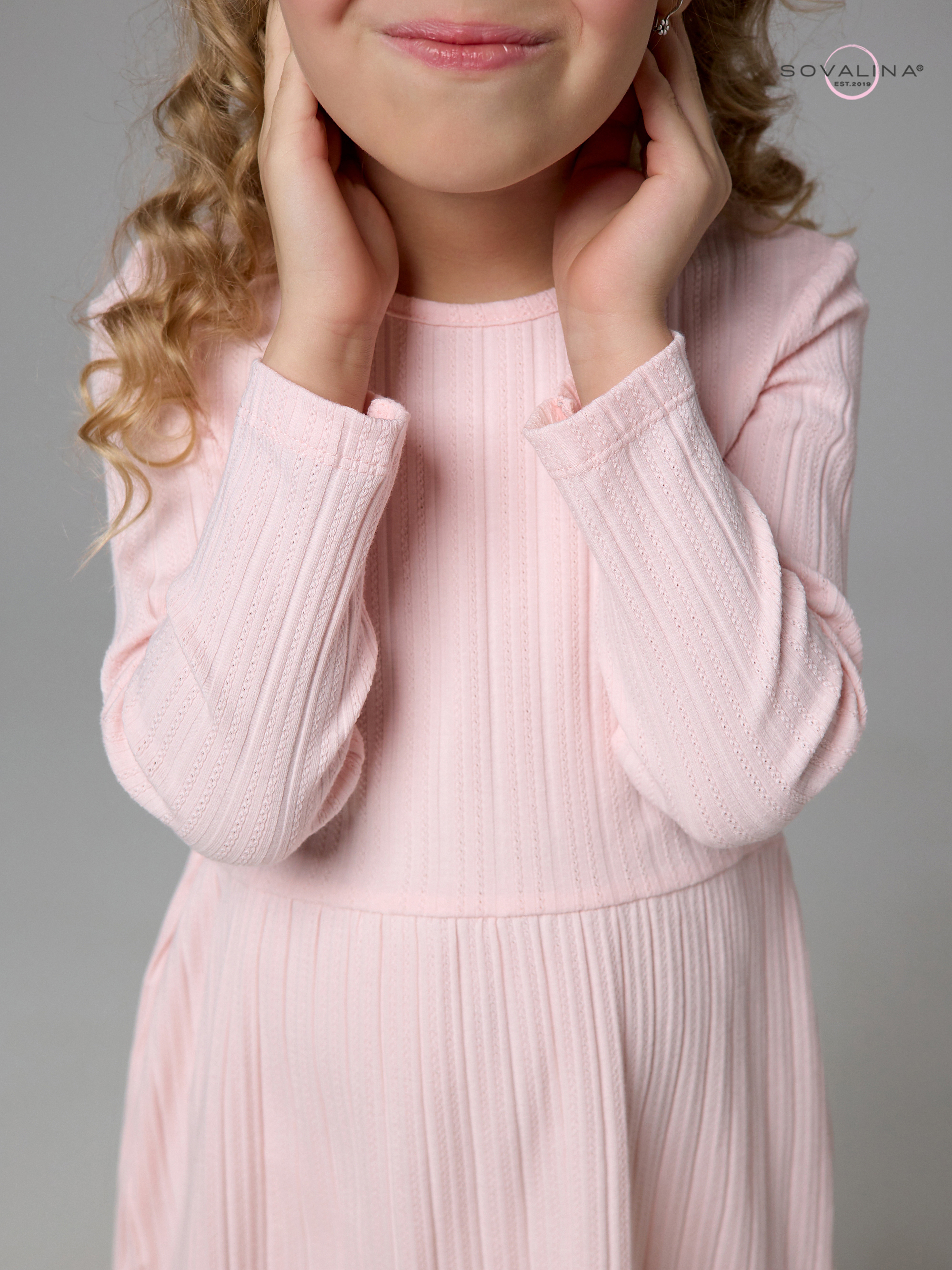 Детское трикотажное платье лапша для девочки ТМ SOVAlina. Сделано из эластичного материала косичка-лапша. Длинный рукав, стильная актуальная фактура, комфорт во время носки и гипоаллергенность делают данную модель прекрасным дополнением базового гардероба для девочек. Горловина и область талии тянется, это добавит девочке удобства при одевании. Это нежное платье в рубчик очень мягкое и плотное, не просвечивает. Идеально как осеннее или летнее повседневное платье для детского сада, прогулок в теплое время года как весной, домашняя одежда, нарядное платье на праздник осени, осенний бал, 8 марта или на новогодний утренник. Обращаем Ваше внимание, фото выполнено в условиях студийного освещения, при естественном свете цвета могут незначительно отличаться. Для придания первоначального вида изделию после стирки - необходима глажка. 100% хлопок