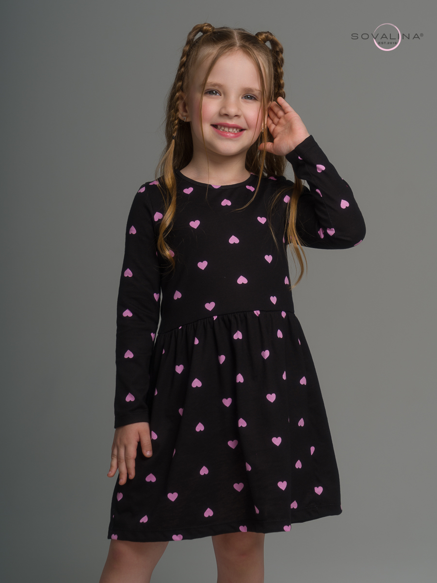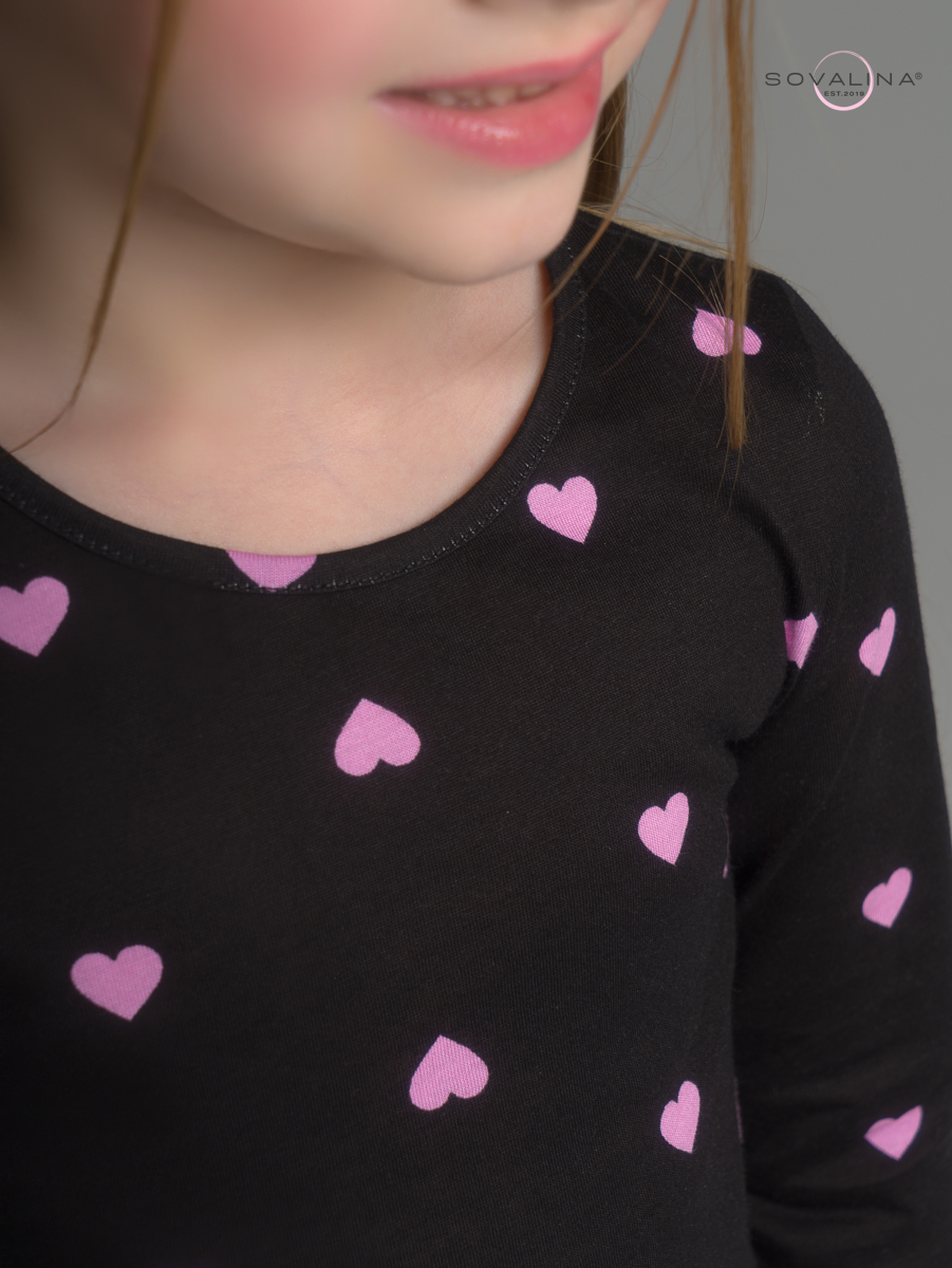 Платье Эля розовые сердечки на черном