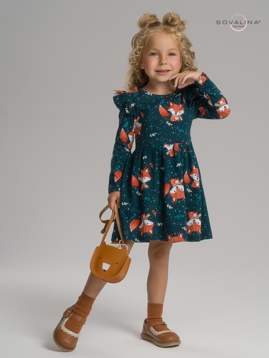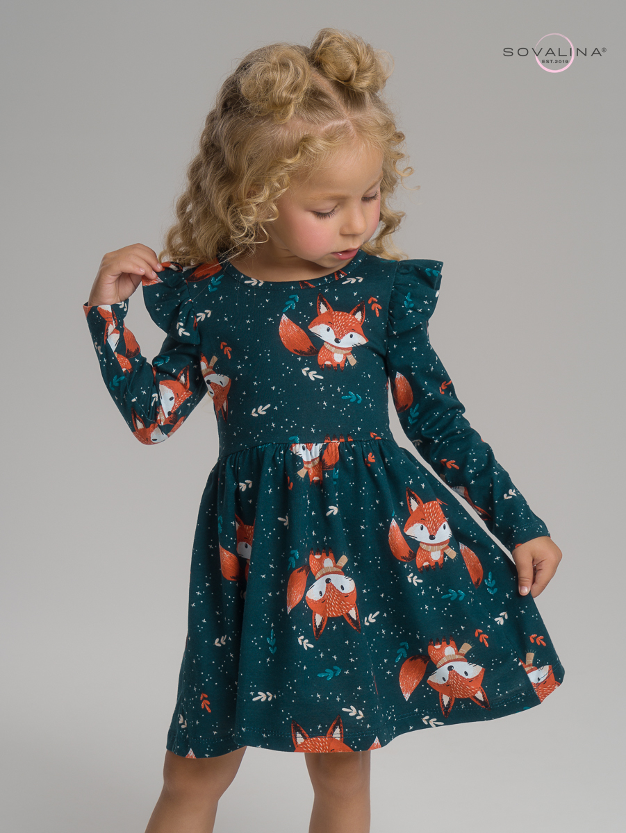 Красивое трикотажное платье для девочки ТМ SOVAlina идеальный вариант для ребенка в садик или на праздник. Отличный выбор для осеннего и зимнего гардероба. Платье на каждый день из натурального хлопка (кулирка с принтом) подарит мягкость, нежность и уют на протяжении всего дня. Подойдет и для особых случаев - на день рождения, праздник осени, весеннее 8 Марта или новогодние утренники. Благодаря своему стильному дизайну и рюшам платье для девочки станет незаменимым базовым предметом гардероба для каждой маленькой принцессы. 100% хлопок