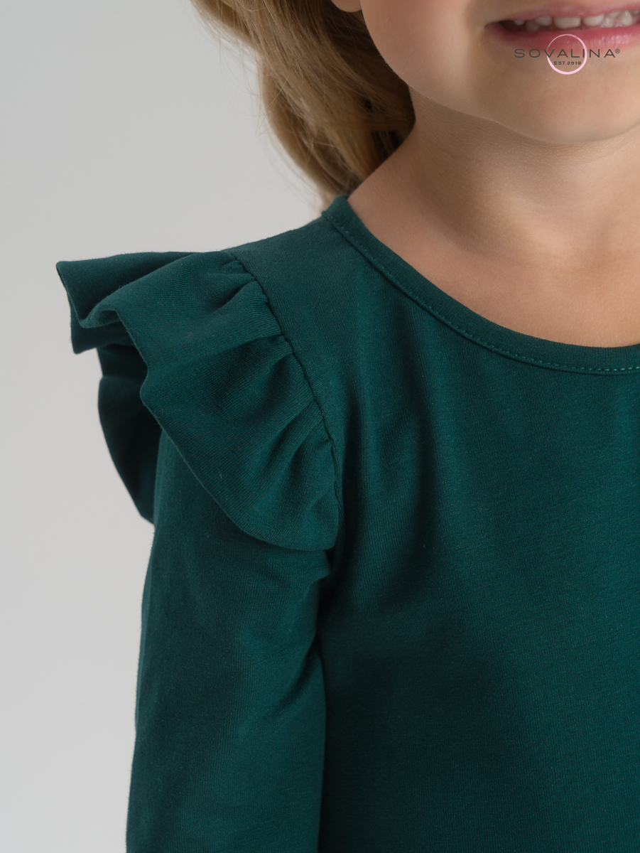 Выполнено из дышащего и комфортного полотна кулирной глади, состав ткани 100% хлопок.