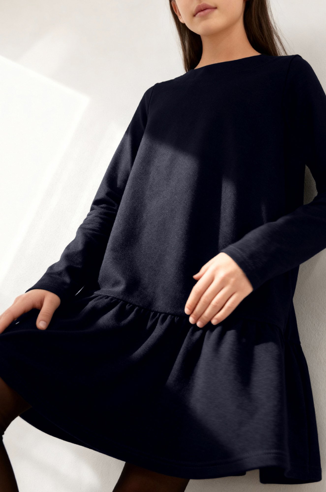 Детское платье для девочек и девочек-подростков создано для стильных и комфортных школьных образов. Темно-синее платье для детей станет универсальным вариантом для школы, прогулок и праздничных мероприятий.