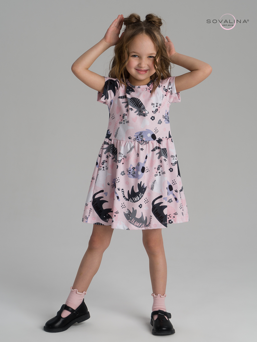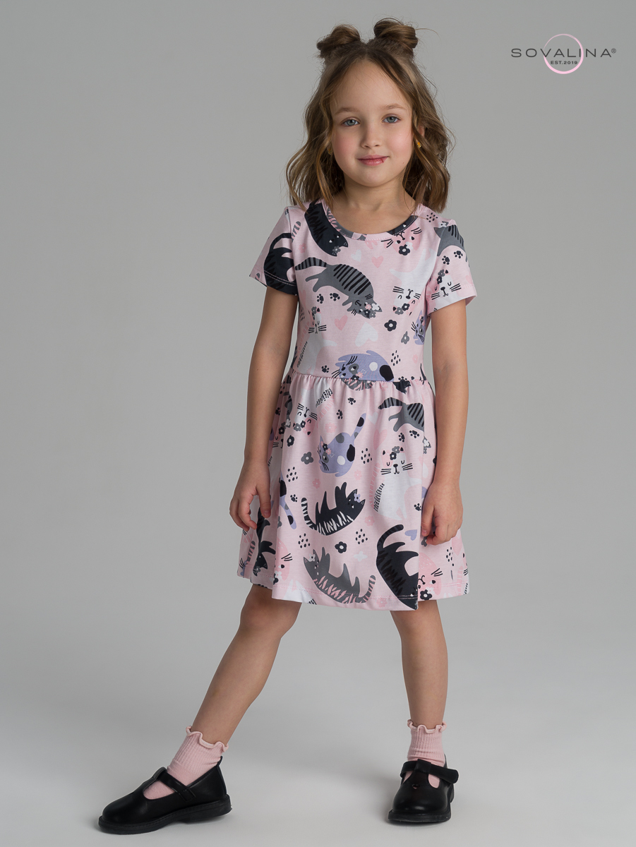 Трикотажное платье для девочки с коротким рукавом от бренда SOVAlina.