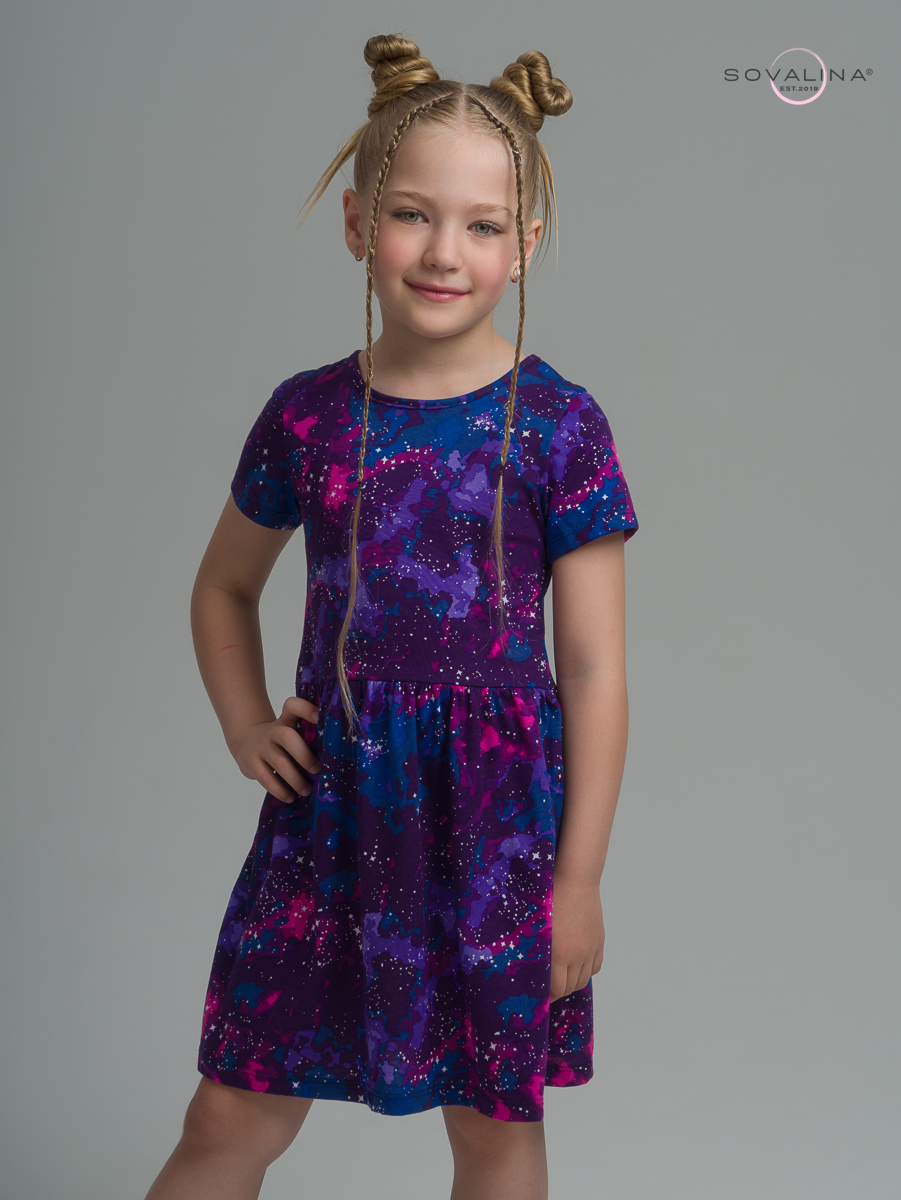 Трикотажное платье для девочки с коротким рукавом от бренда SOVAlina.