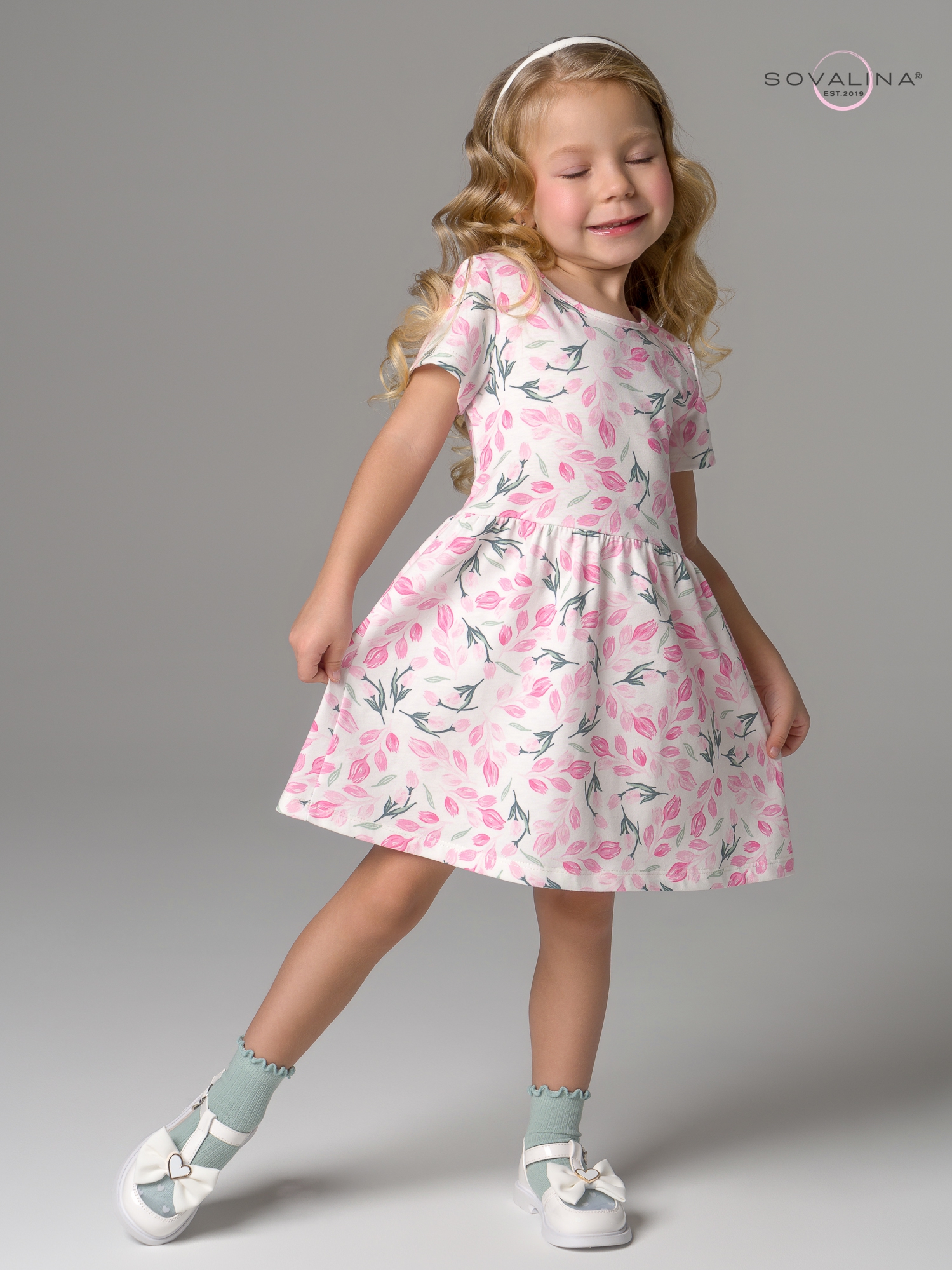 Трикотажное платье для девочки ТМ SOVAlina – любимая модель маленьких леди, которые хотят выглядеть стильно в любой ситуации. Отсутствие застежки позволит ребенку самостоятельно переодеваться. Выполнено из легкого полотна кулирной глади из 100% хлопка. Ткань гипоаллергенная и обладает отличной воздухопроницаемостью, благодаря чему дарит комфорт в жаркую погоду, летом на пляж и весной на каждый день или утренник. Нарядное платье-сарафан без рукавов обратит на себя восхищенные взгляды окружающих, что так важно для юных красавиц. Красивое платьице девочка сможет надеть осенью и даже зимой в детский сад, 8 марта или день рождения. Яркий милый принт в цветочек не оставит равнодушными маленьких принцесс. Обращаем Ваше внимание, фотосессия выполнена при студийном освещении, при естественном свете цвета могут иметь другие оттенки. 100% хлопок