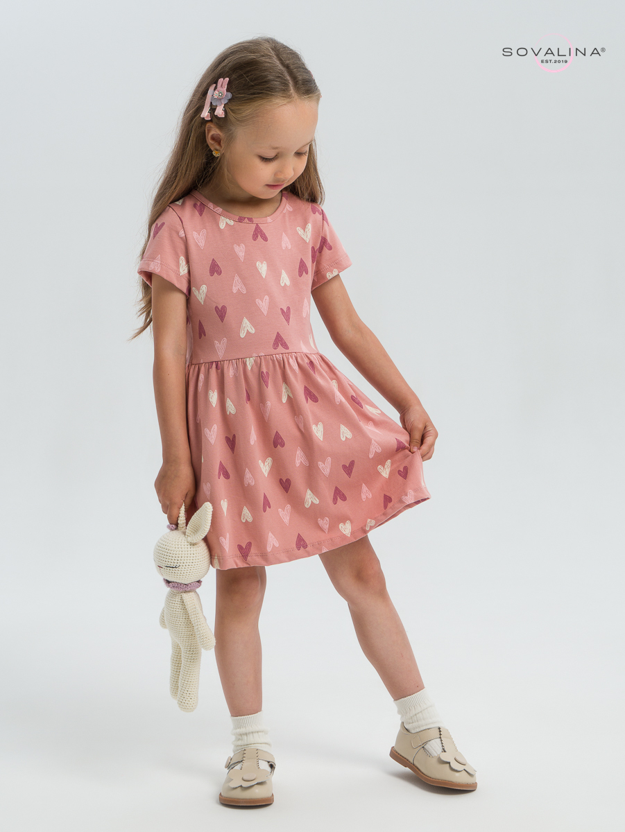 Трикотажное платье для девочки с коротким рукавом от бренда SOVAlina.