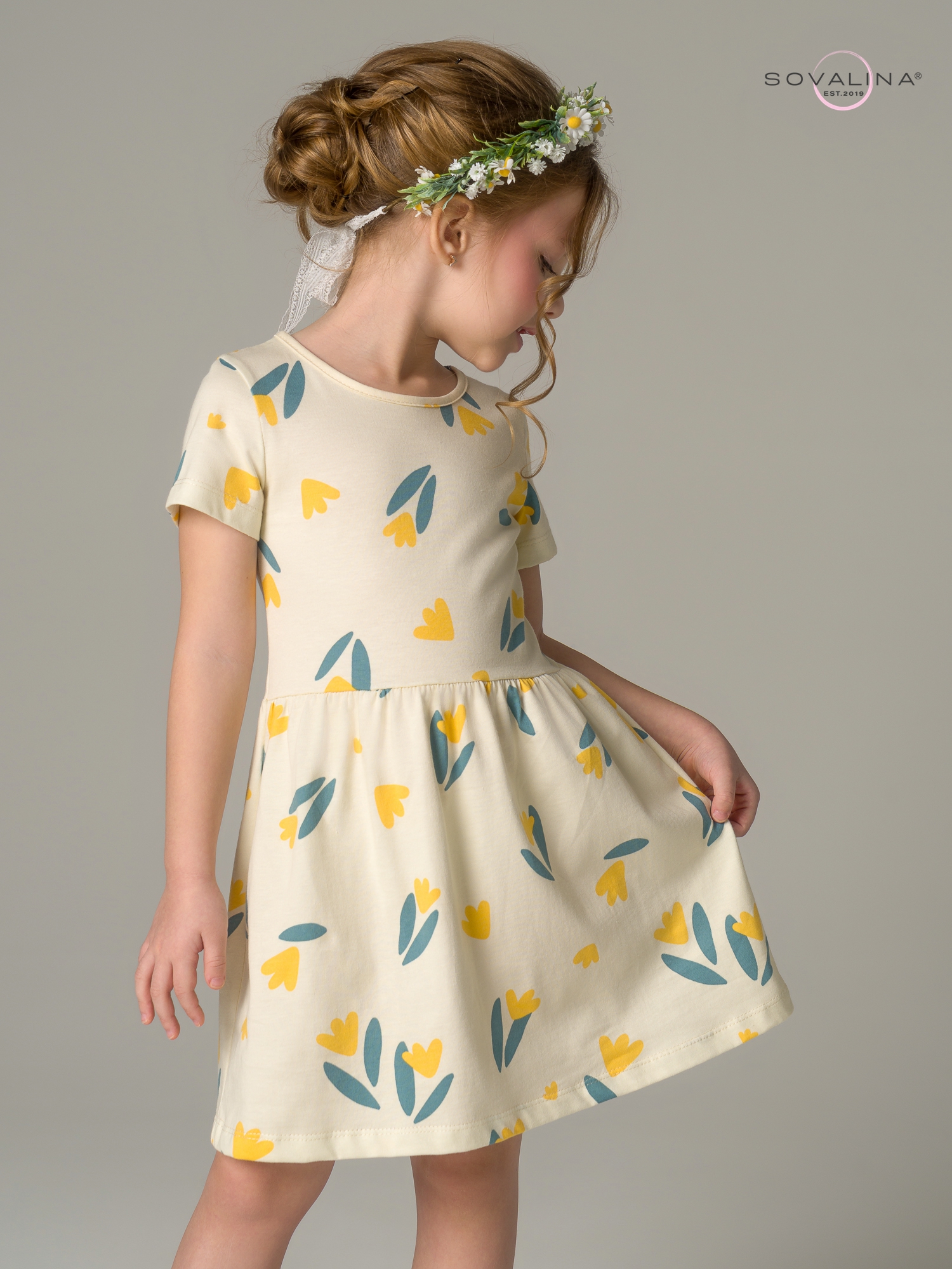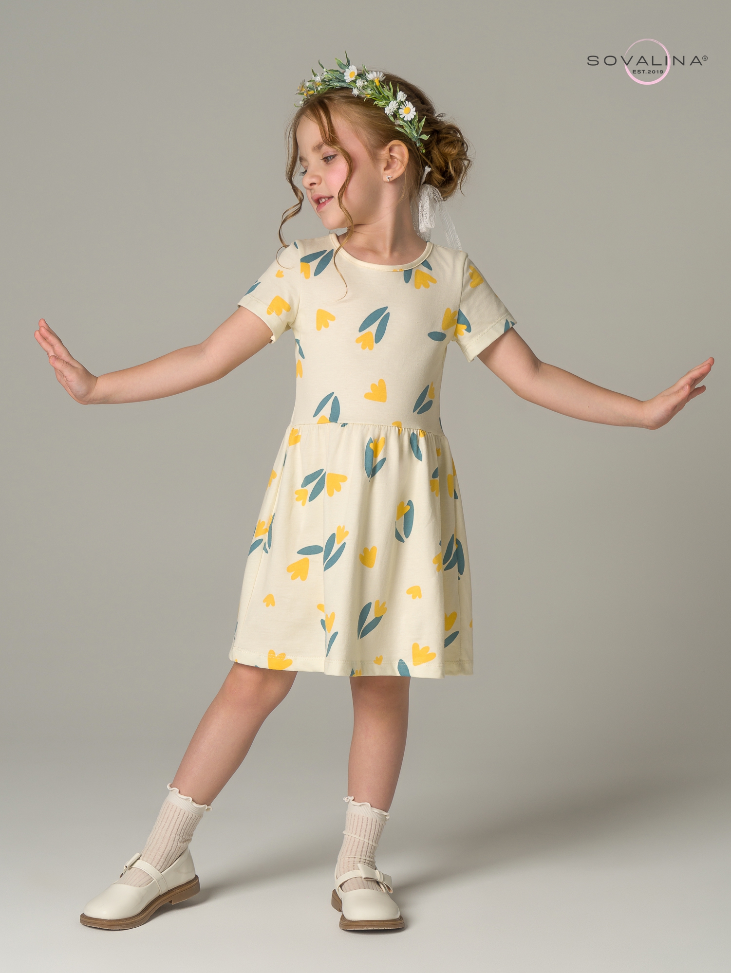 Трикотажное платье для девочки с коротким рукавом от бренда SOVAlina.