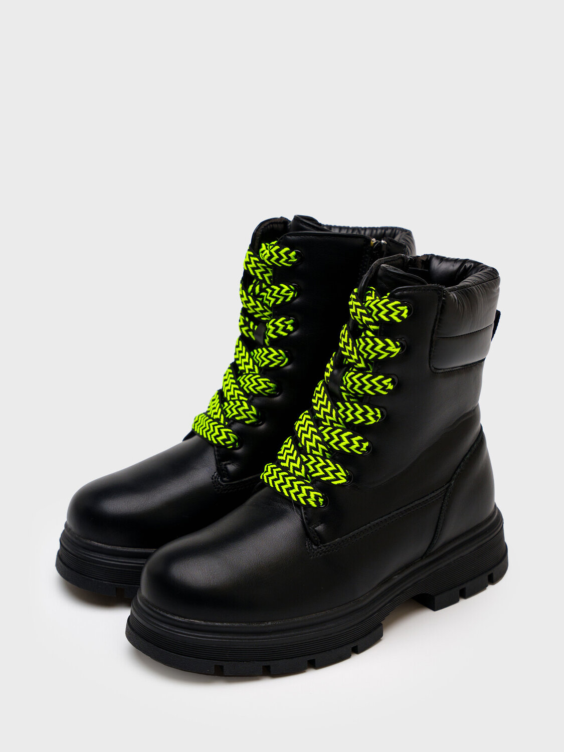 Ботинки демисезонные для девочки подростка. Верх обуви выполнен из искусственной принтованной кожи, обладающей высокими эксплуатационными свойствами • Подкладка и съемная стелька выполнены из из шерстяного меха 80%. • Формоустойчивый задник поддерживает стопу в правильном положении. • Эргономичная форма колодки обеспечивает правильное формирование стопы ребенка • Модель имеет широкие цветные шнурки и молнию изнутри • Высокая подошва из терморезины имеет глубокий протектор, не скользит и устойчива к истиранию. • Рекомендованный температурный режим ( зависит от активности ребенка и поддевы под обувь) от +0°С до -10°С. Модель из капсульной коллекции OK.PTD. Соберите полный образ в едином стиле!
