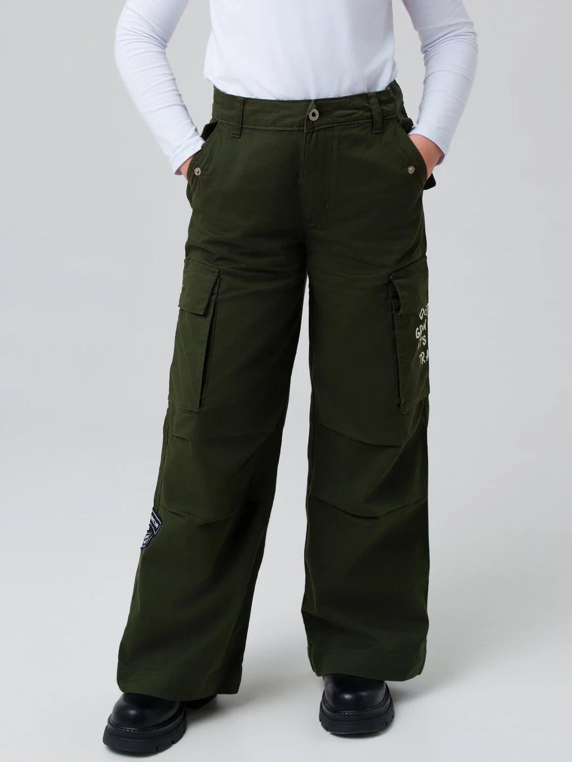 Сочетайте с лонгсливами, кроп-топами, худи или бомберами. Дополните образ массивными кроссовками, бейсболкой или панамой для городского стиля. Эти брюки станут ключевым элементом в гардеробе современной девочки-подростка. Подходит для девочек от 11 до 17 лет.