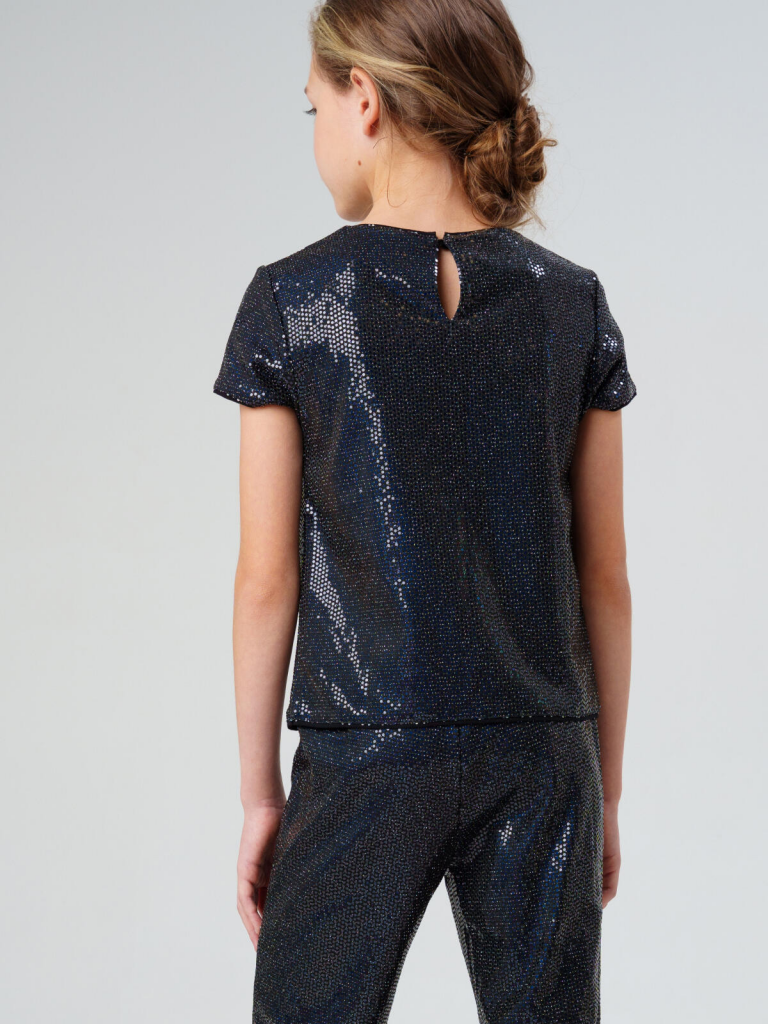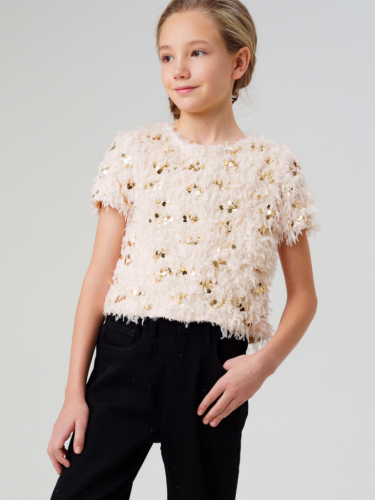 Нарядный новогодний джемпер с паетками для девочки подростка от PlayToday.Преимущества модели:+ блестящая кофта для девочки — удобно, модно, стильно+ трикотажная подкладка с высоким содержание хлопка+ идеально для подростков: свободная посадка, не сковывает движенияУникальное сочетание ткани делает джемпер ярким акцентом гардероба. Свободный крой обеспечивает комфорт и свободу движений.Когда и как носить:Подходит для праздников, дней рождения, школьных мероприятий, фотосессий, новогодних утренников или просто как стильный наряд на выход.Советы по стилю:Носи джемпер с черными классическими брюками, юбками, грубыми ботинками или балетками от PlayToday. Подходит для девочек от 8 лет. Верхняя ткань: 91% полиэстер, 5% люрекс, 4% эластанПодкладка: 60% хлопок, 40% полиэстер