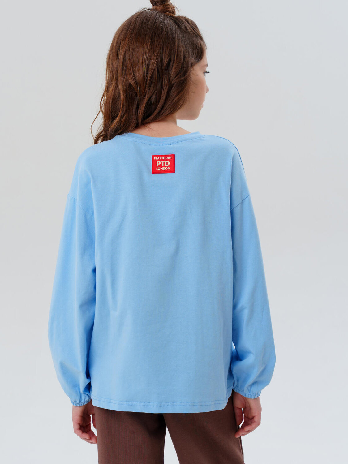 Лонгслив оверсайз для девочки подростка от бренда PlayToday — модная трикотажная футболка с длинными рукавами.