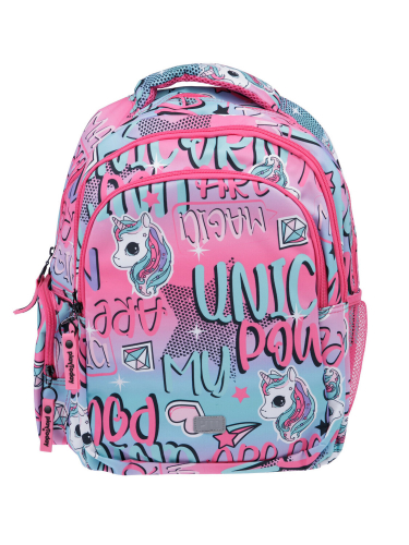 Рюкзак текстильный для девочки. 38*29*19 см. Широкие регулируемые лямки с мягкими вкладками и сетчатым покрытием. Ортопедическая спинка. 3 основных отделения на молнии. 2 боковых кармана: сетчатый и на молнии. Внутри рюкзака: 1 отсек - карман на молнии, открытые карманы для канцелярии. 2 отсек - без карманов, 3 отсек - карман для папок, карман на молнии, 2 кармана без замка, карабин для крепления пенала/ключей. Усиленная спинка, дно и верхняя ручка. Светоотражающие элементы на переднем кармане и плечевых ремнях.