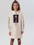 Платье из футера с капюшоном. Манжеты в эластичный рубчик.