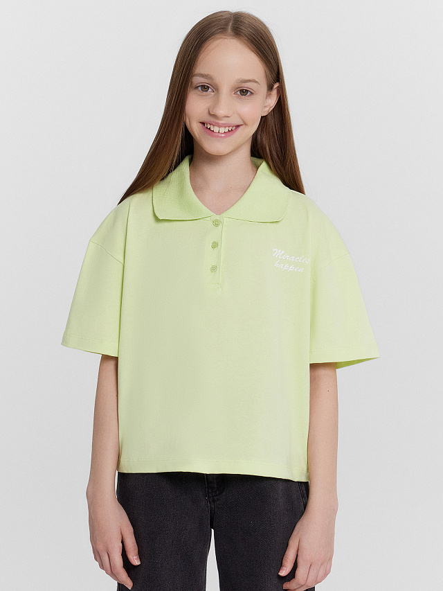 Это стильное поло для девочек свободного силуэта — отличное сочетание удобства и элегантности. Отложный воротник придает классический акцент, а застежка на пуговицах делает модель практичной и удобной. Спущенная линия плеча и слегка углубленная пройма обеспечивают комфортную посадку, позволяя ребенку свободно двигаться. Короткие рукава делают поло универсальным для теплого сезона, а мягкая хлопковая кулирка дарит приятные ощущения при носке. Натуральный материал хорошо пропускает воздух, обеспечивая комфорт даже в жаркие дни. Эта модель идеально сочетается с брюками, джинсами или юбками, позволяя создавать стильные образы для школы, прогулок или повседневных активностей. Практичный и элегантный выбор на каждый день!