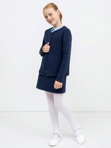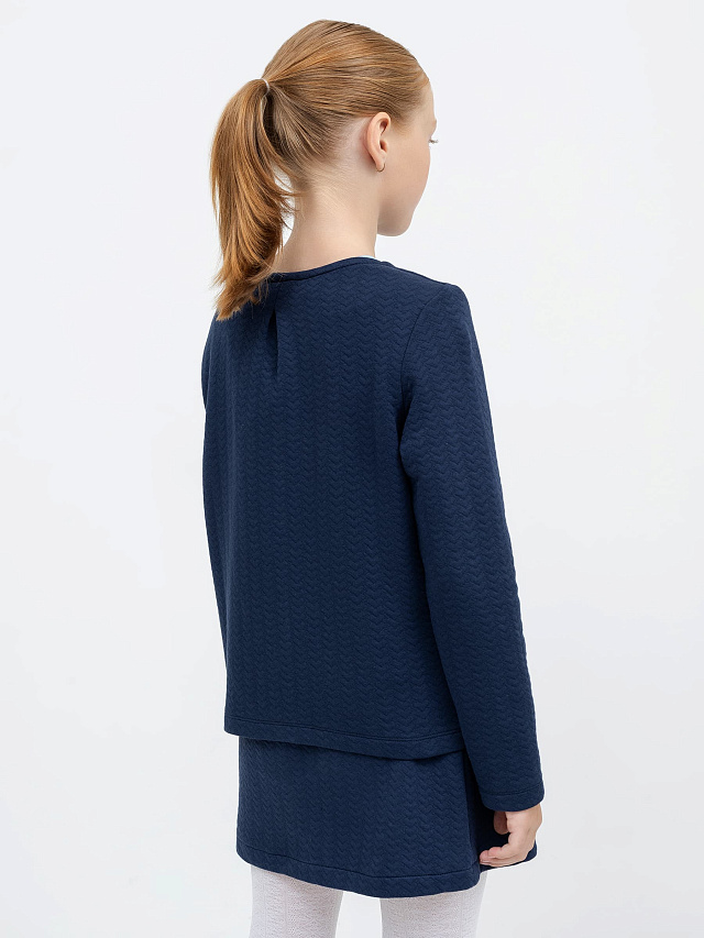 Жакет прямого силуэта из капитона. Спинка без швов и рельефов, перед с центральной застежкой на кнопки. Края бортов закруглены.Горловина круглой формы. Рукава длинные. Есть боковые карманы. Практичный выбор!