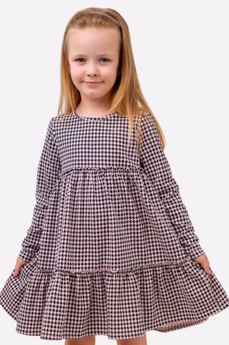 Воздушное платье для настоящих принцесс! Детское платье для девочки выполнено из натурального 100% хлопка. Свободный крой, длинный рукав, удобная застежка на пуговицы – каждая деталь создана для комфорта ребенка. Благодаря принту гусиная лапка и воздушным сборкам платьице для детей поможет создать кокетливый образ.