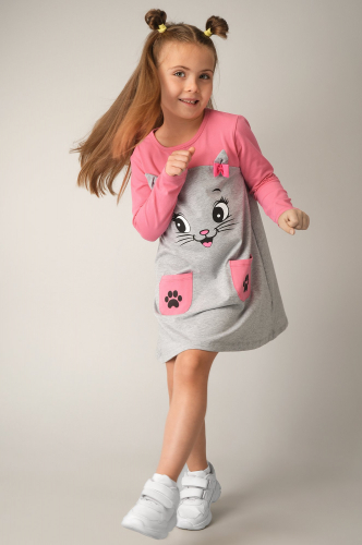 Очаровательное платьице, которое невозможно не полюбить с первого взгляда! Забавная Кошечка с ушками и бантиком вызывает улыбку, а мягкий хлопковый трикотаж делает его удобным для активных девчонок. Розовое детское платье создано для радости и комфорта каждый день.