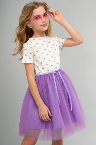 Праздничное платье станет основой стильных весенних образов. Короткие рукава, горловина с волнистыми краями и пышная юбка с хлопковой подкладкой придают изысканность и нежность. Юбка с акцентным поясом делает образ завершенным, даря маленькой красавице шарм и обаяние, которые невозможно не заметить. Принт сердечки на фактурной ткани лапша добавляет трогательной романтики. Классическое платье дополнено декоративной атласной лентой. Контрастный поясок добавляет нежному наряду оригинальности.