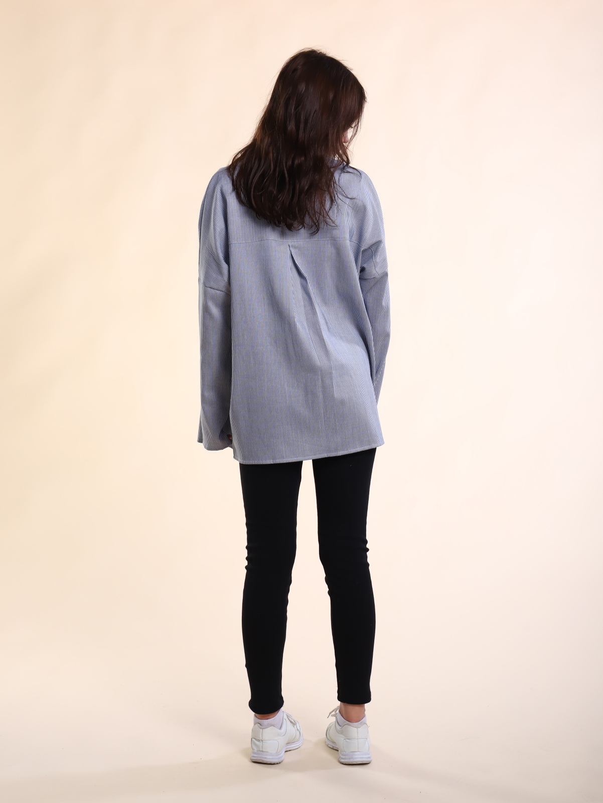 Детская рубашка свободного силуэта, с классическим воротником, с длинным рукавом без манжета.