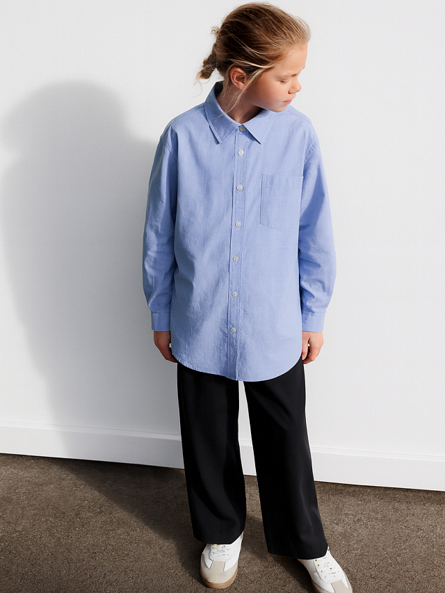 Однотонная рубашка для девочки выполнена из высококачественного хлопка. Материал натуральный, хорошо пропускает воздух, слегка тянется и не сковывает движения. Модель с удобной центральной застежкой на пуговицы. На детали переда - накладной карман. Спинка с отрезной кокеткой, по центру заложена встречная складка. Горловина круглой формы, в горловину втачан воротник с цельнокроеной стойкой. По воротнику проложена отделочная строчка. Рукав длинный, широкий с односторонними складками и отрезными манжетами из основного полотна. Низ изделия - фигурный. К рубашке в комплект можно подобрать интересный и красивый низ, с которым можно создать модный и выразительный образ. Такой вариант отлично подойдет в школу на занятия. Представлена в различных цветах. Отличный повседневный вариант от Mark Formelle!