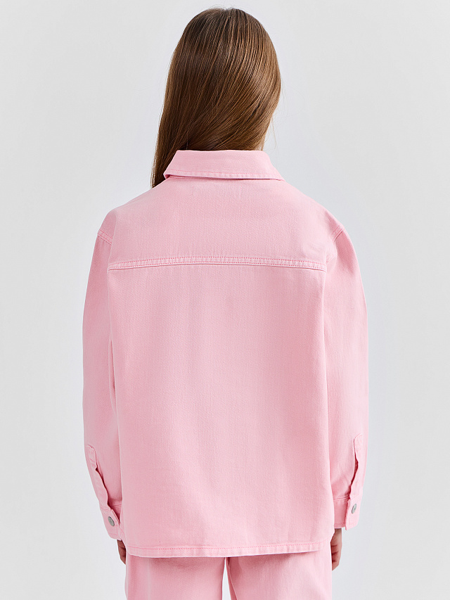 Розовая джинсовая рубашка оверсайз для девочек — удобная модель, которую можно носить и как самостоятельный верх, и как лёгкую куртку в прохладную погоду. Прямой свободный крой, розовый цвет и классические джинсовые детали делают её универсальной и практичной для повседневной носки.