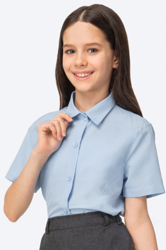 Бестселлер, покоряющий сердца! Базовая голубая детская рубашка для девочек и подростков выполнена из приятного к телу хлопка. Однотонная школьная рубашка для детей не стесняет движений благодаря удобному приталенному крою.
