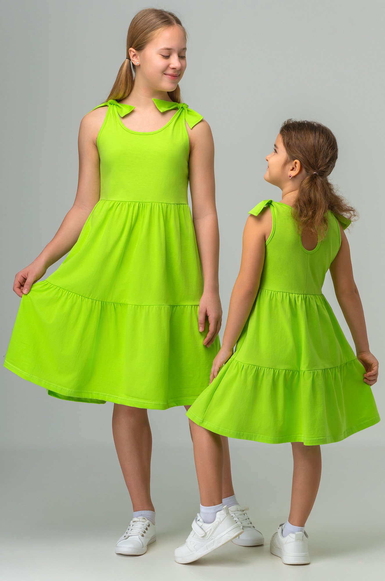Однотонный ярко-зеленый сарафан из трикотажа подойдет для поездок, путешествий и активного отдыха. Подростковое платье идеально для повседневных прогулок.