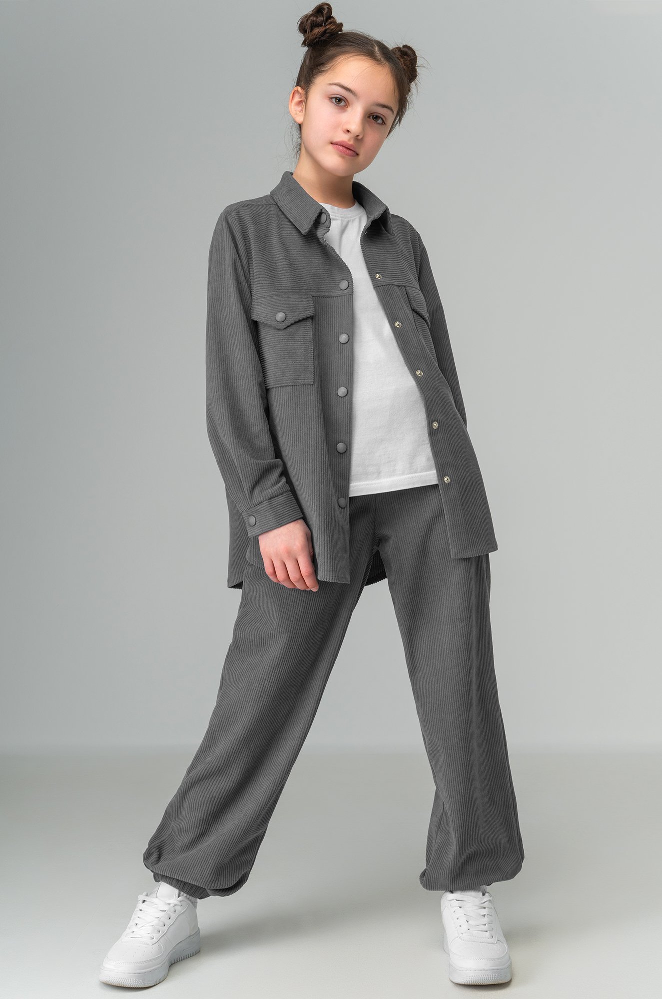 Вельветовый костюм с брюками для девочки — прекрасное решение на осень и весну. Мягкая бархатная фактура и свободный крой делают подростковый костюм любимым вариантом на каждый день.
