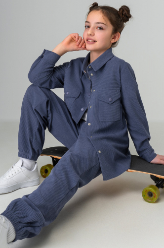 Вельветовый детский костюм с брюками — настоящий хит для девочек, которые любят стиль и комфорт! В наборе рубашка с отложным воротником и штаны с карманами.