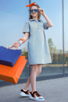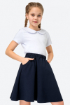 Добавление полиэстера и лайкры в состав делает трикотажную ткань более прочной, она не теряет форму даже после многочисленных стирок. Контрастный воротник синего платья для школы разбавит любой классический образ.