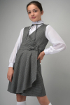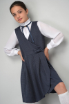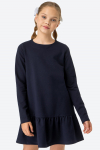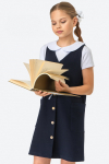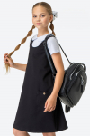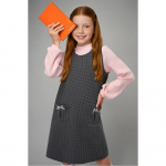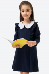 Детское платье с белым воротником и манжетами – идеал школьной формы! Платье для девочки выполнено из хлопкового трикотажа. Линия талии присборена, на спинке предусмотрена застежка-капелька на пуговице.