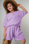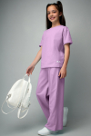 — однотонный сиреневый комбинезон выдерживает многочисленные стирки, не теряя форму и цвет;