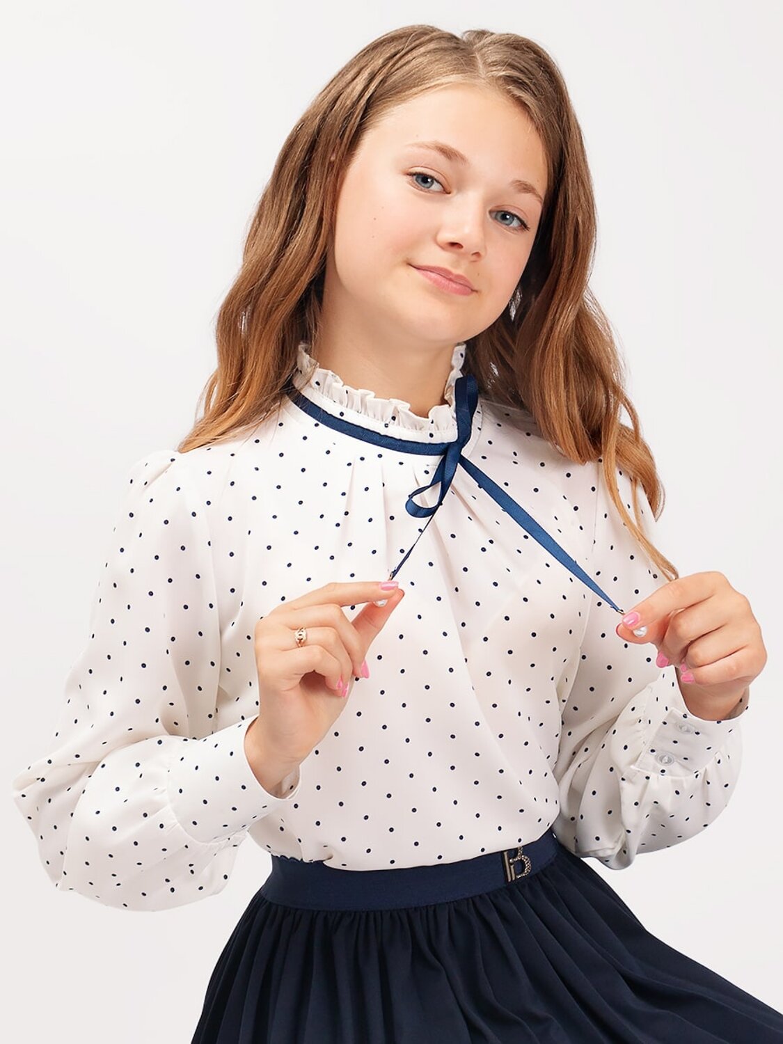 Блузка для девочки Соль&Перец с длинным рукавом. Ворот-стойка. На спине молния. Прекрасный выбор для школы или торжественного мероприятия.