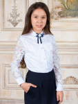 Блузка для девочки СольПерец. Отложной воротник выполнен из кружева, рукава-крылышки выполнены из лёгкого фатина. Мягкий, приятный к телу материал - шифон, обеспечит идеальную посадку изделия по фигуре. Блузка дополнена съёмным галстуком из кружева. Прекрасный выбор для создания красивого школьного образа. Цвет: белый; Материал: вискоза;вискоза; Состав: 70% вискоза, 25% нейлон, 5% спандекс.