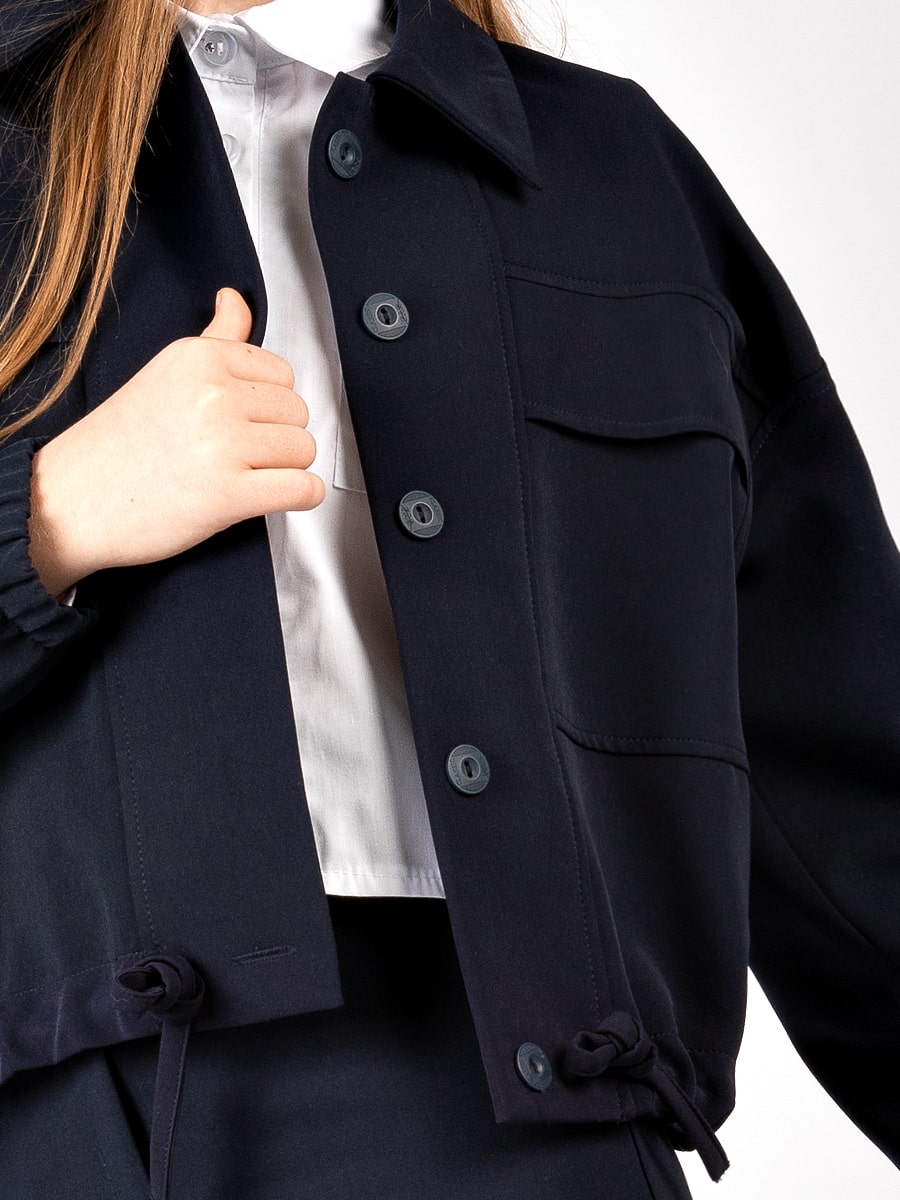 Бомбер для девочки СольПерец на пуговицах с потайной планкой, отложным воротником и большими накладными карманами с клапаном. Рукава на мягкой эластичной резинке, низ бомбера дополнен кулиской. Бомбер выполнен из износостойкой трикотажной ткани которая долго сохраняет форму и привлекательный внешний вид. Бомбер прекрасно сочетается с юбками и брюками. Подойдёт для посещения школы, официального или праздничного мероприятия. Цвет: темно серый; Материал: хлопок стрейч;хлопок стрейч; Состав: 73% хлопок, 22% полиэстер, 5% полиуретан.