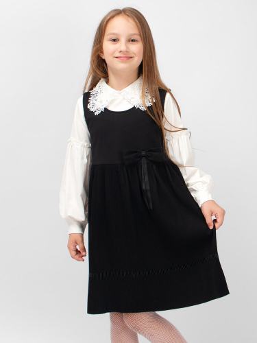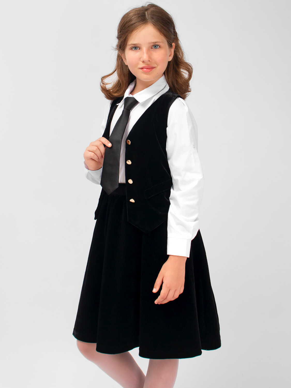 Костюм для девочки Соль&Перец из бархата. Классическая жилетка на пуговицах, дополнена съёмной брошью. Эффектная юбка силуэта солнце-клёш с подкладом, в пояс вшита резинка для регулировки обхвата талии. Износоустойчивый материал позволит надолго сохранить форму и привлекательный внешний вид изделия. Идеальный выбор для создания стильного, школьного образа.