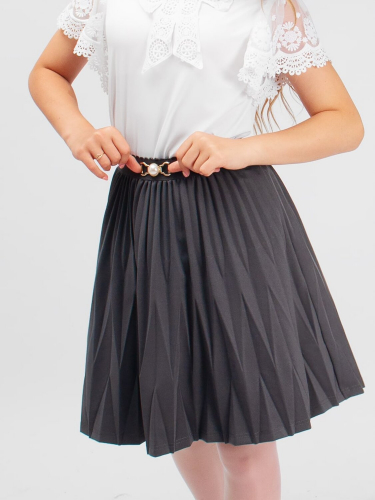Юбка для девочки Соль&Перец силуэта трапеция, в складку, с пришитыми завязками на поясе. В пояс вшита резинка для регулировки обхвата талии. Износоустойчивый материал позволит надолго сохранить форму и привлекательный внешний вид изделия. Идеальный выбор для создания стильного, школьного образа.