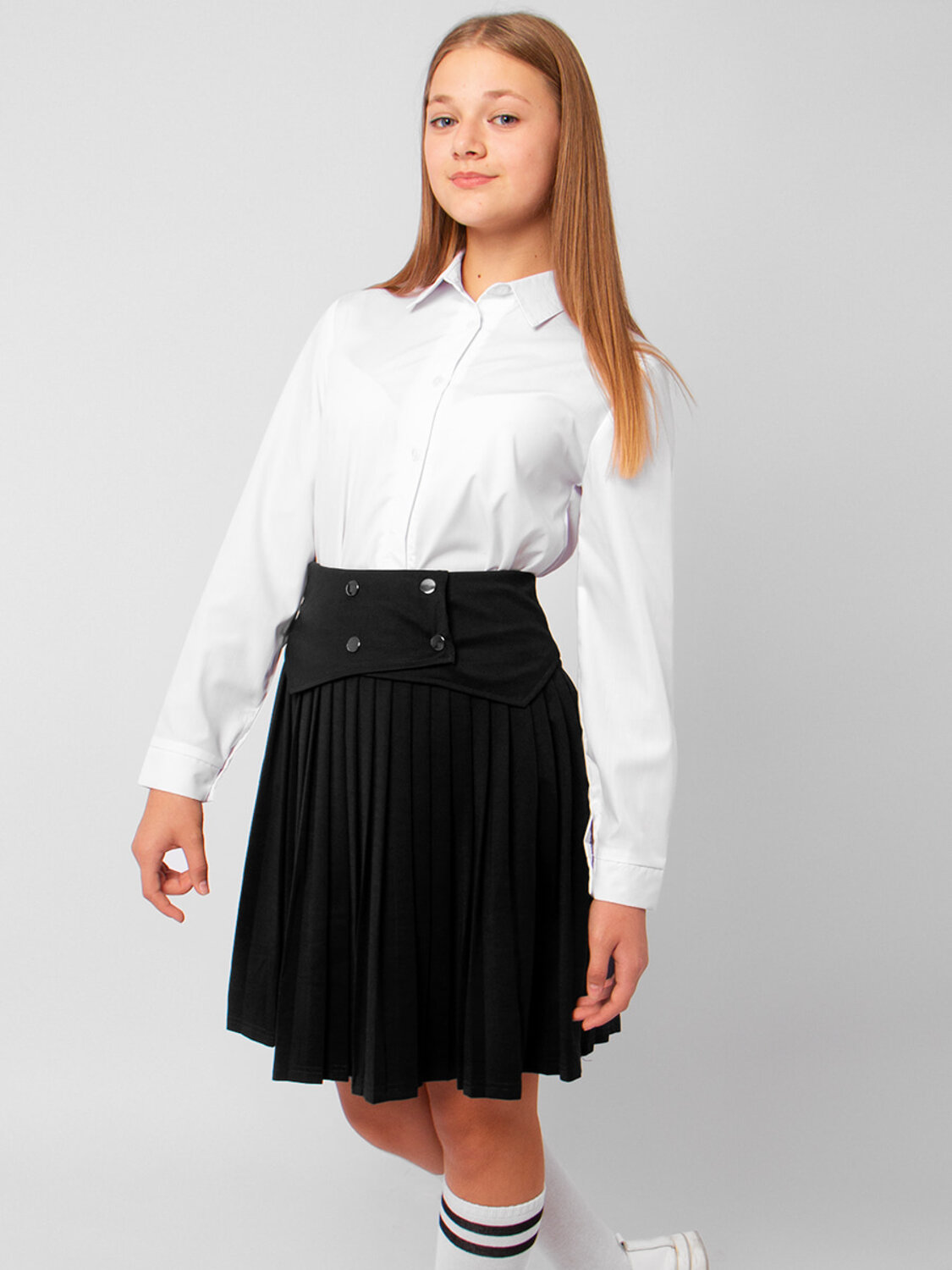 Юбка для девочки Соль&Перец силуэта солнце-клёш, в складку, с декором на поясе. В пояс вшита резинка для регулировки обхвата талии. Износоустойчивый материал позволит надолго сохранить форму и привлекательный внешний вид изделия. Идеальный выбор для создания стильного, школьного образа.