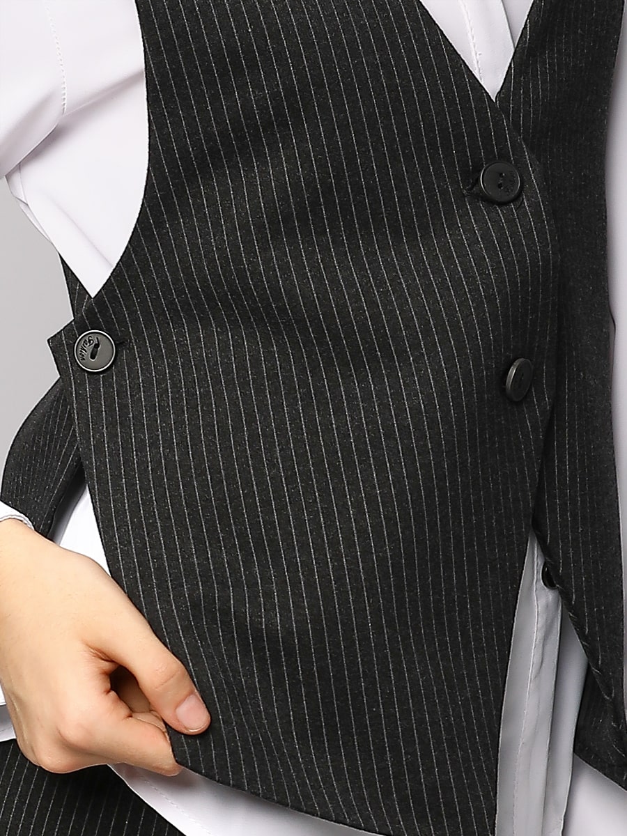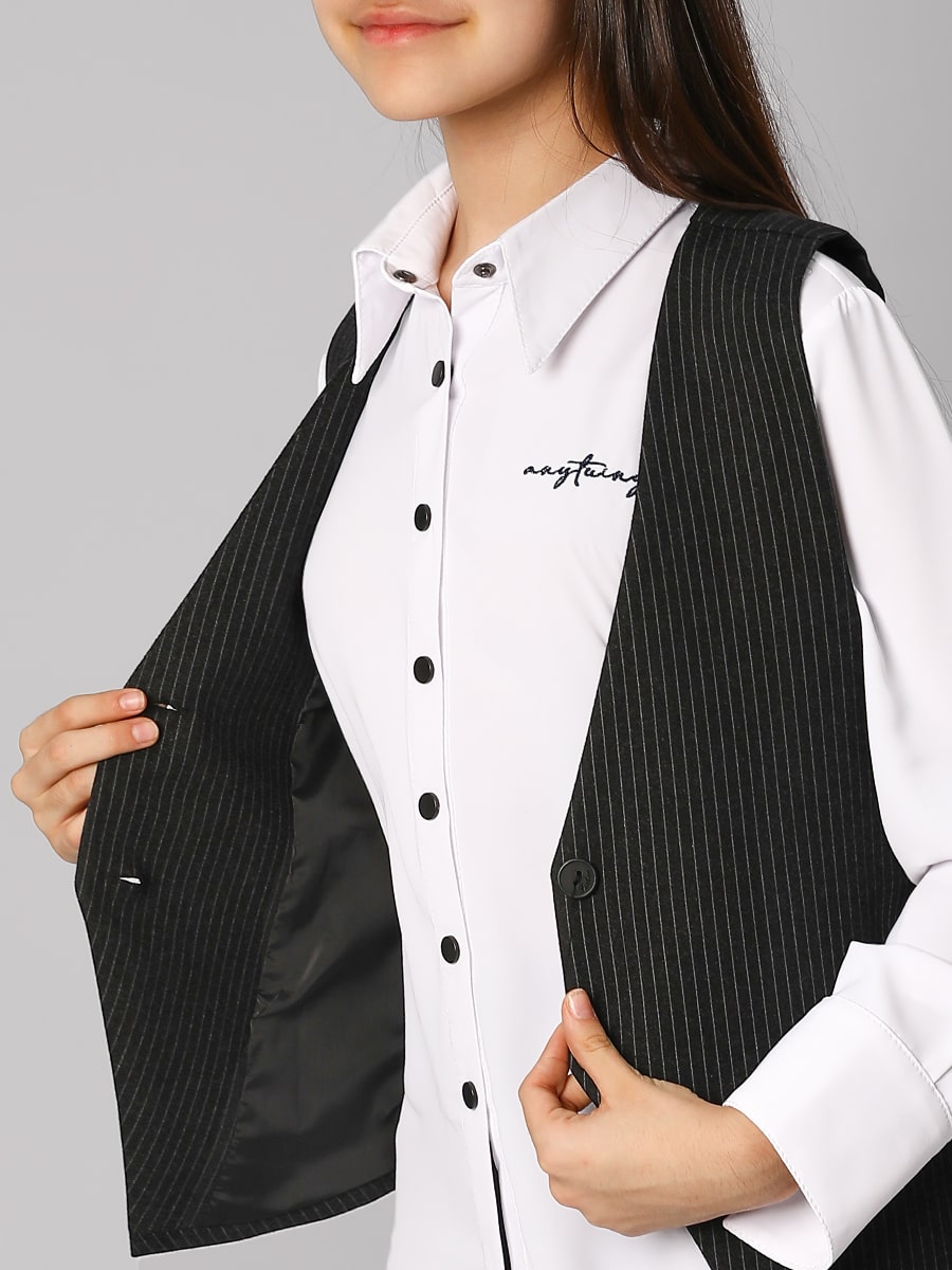 Классический, однобортный жилет для девочки СольПерец. Жилет с подкладом, выполнен из износостойкой костюмной ткани Босс которая долго сохраняет форму и привлекательный внешний вид. Жилет прекрасно сочетается с юбками и брюками. Подойдет для посещения школы, официального или праздничного мероприятия. Цвет: темно-синий;черный; Материал: костюмная ткань;костюмная ткань; Состав: 70% полиэстер, 30% хлопок.