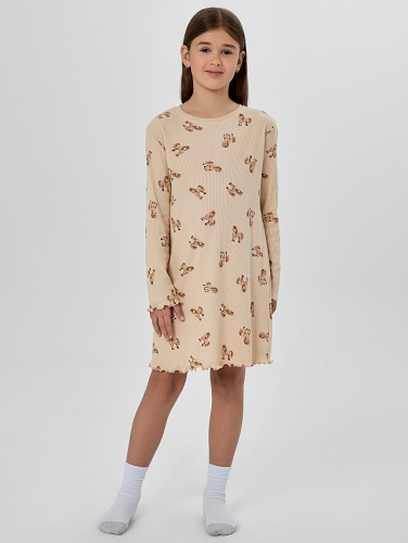 Сорочка с круглой горловиной и длинными рукавами со спущенной линией плеча не сковывает движений во время сна. Очаровательный принт с новогодними медвежатами создает волшебную атмосферу, а аккуратная обработка всех швов гарантирует комфорт даже для чувствительной кожи.