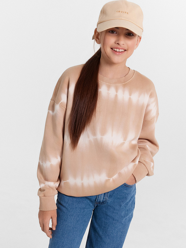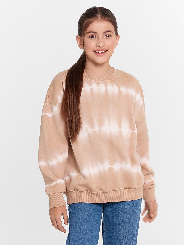 Свитшот для девочек бежевый в технике фаст дай