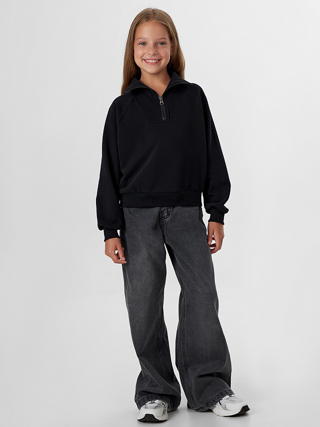 Свитшот для девочек с воротником — это уютная и стильная модель для повседневной носки. Свободный силуэт и спущенная линия плеча обеспечивают полную свободу движений, а длинные рукава реглан мягко облегают руки. Перед и спинка выполнены цельными, что исключает лишние швы и повышает комфорт.