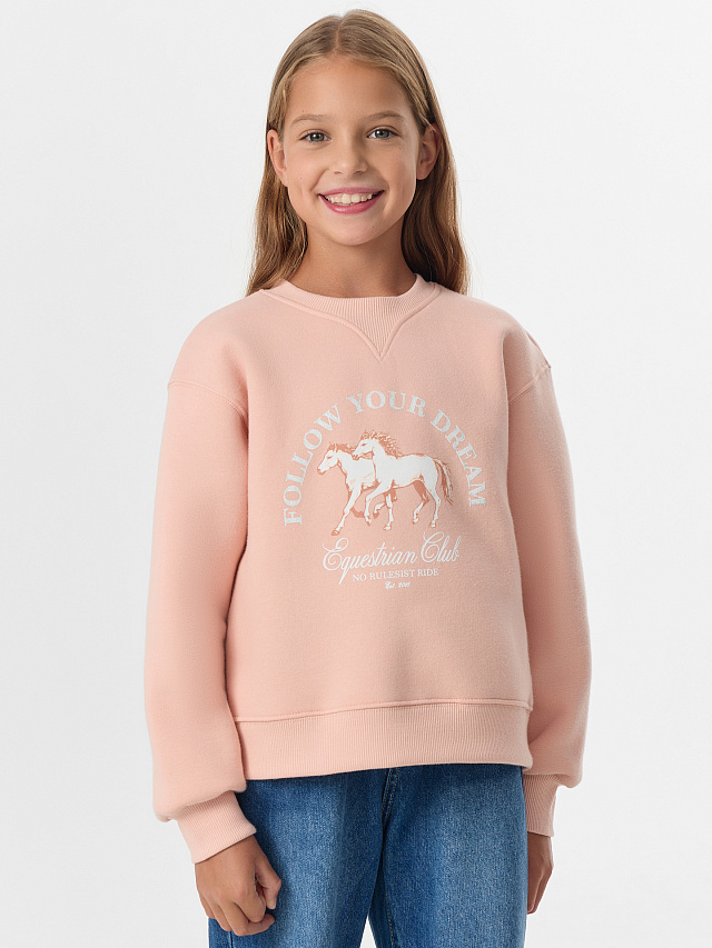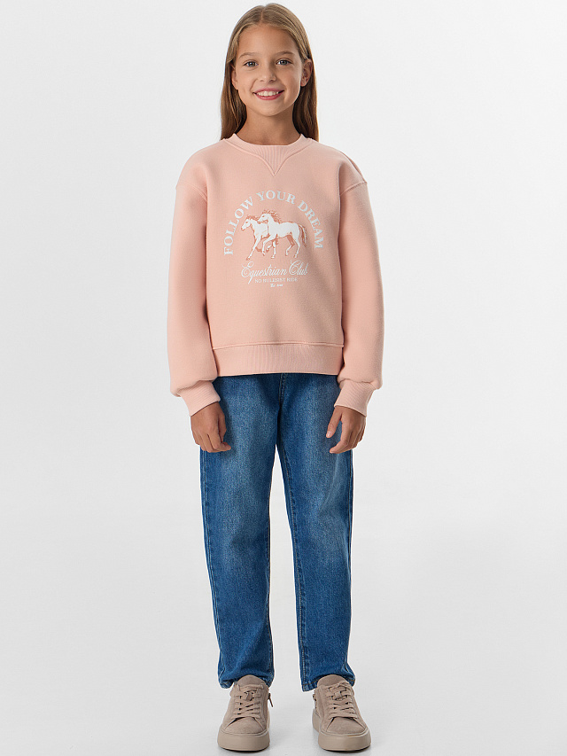 Нежный розовый оттенок легко сочетается с джинсами, юбками и брюками, делая свитшот идеальным вариантом для школы, прогулок и отдыха. Практичная и стильная модель станет любимой вещью в гардеробе ребенка.