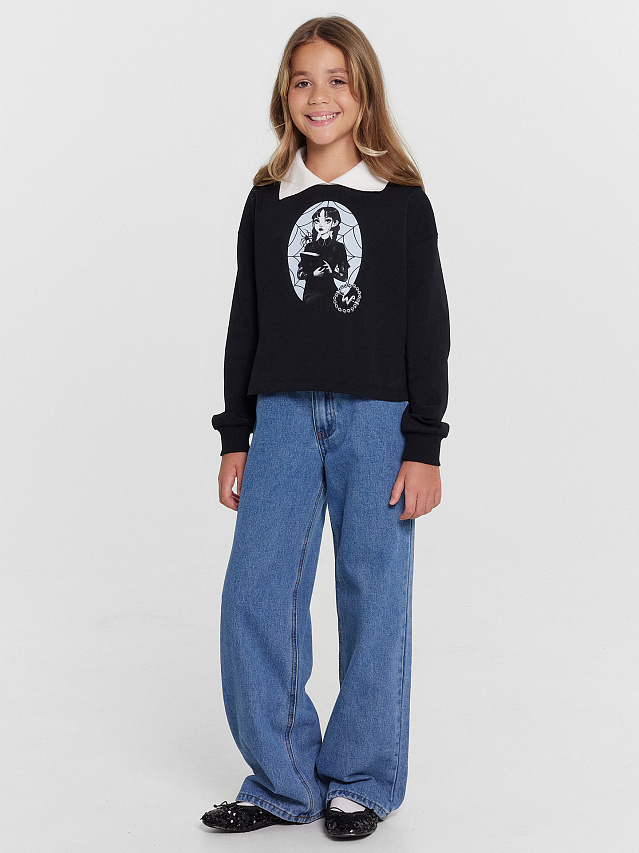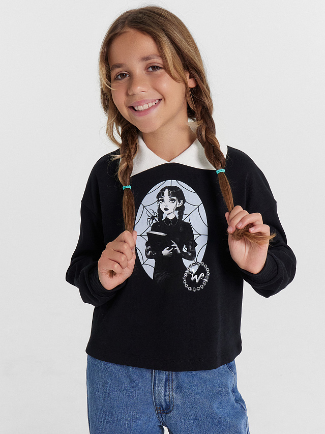 Свитшот для девочек с классическим воротником и принтом "Уэнздей"
