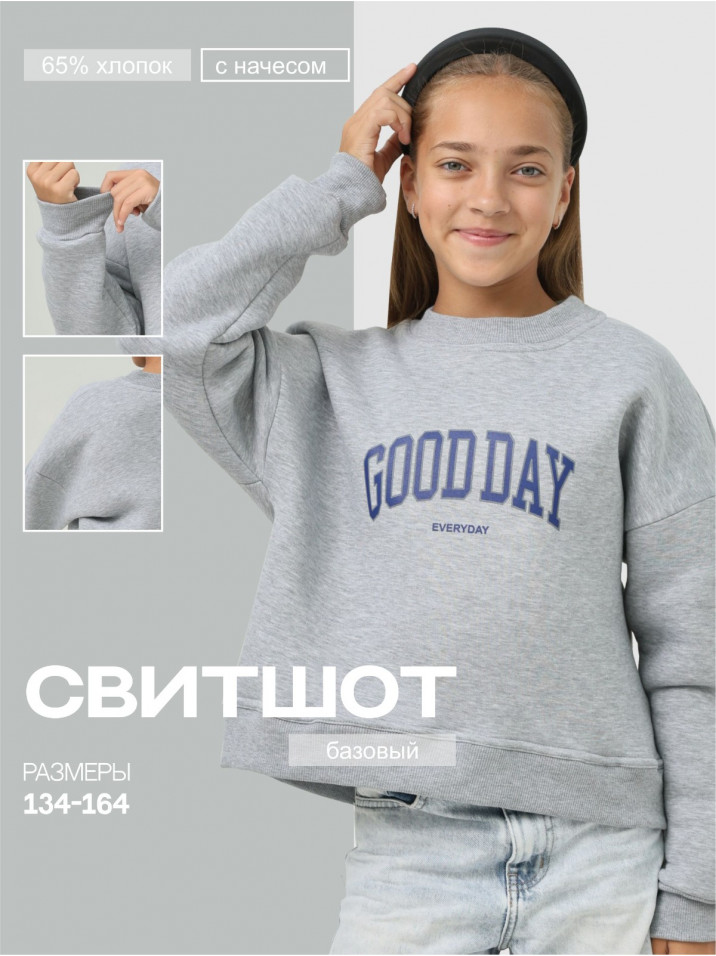 Свитшот Начес "Эвердэй" Серый Меланж Девочка