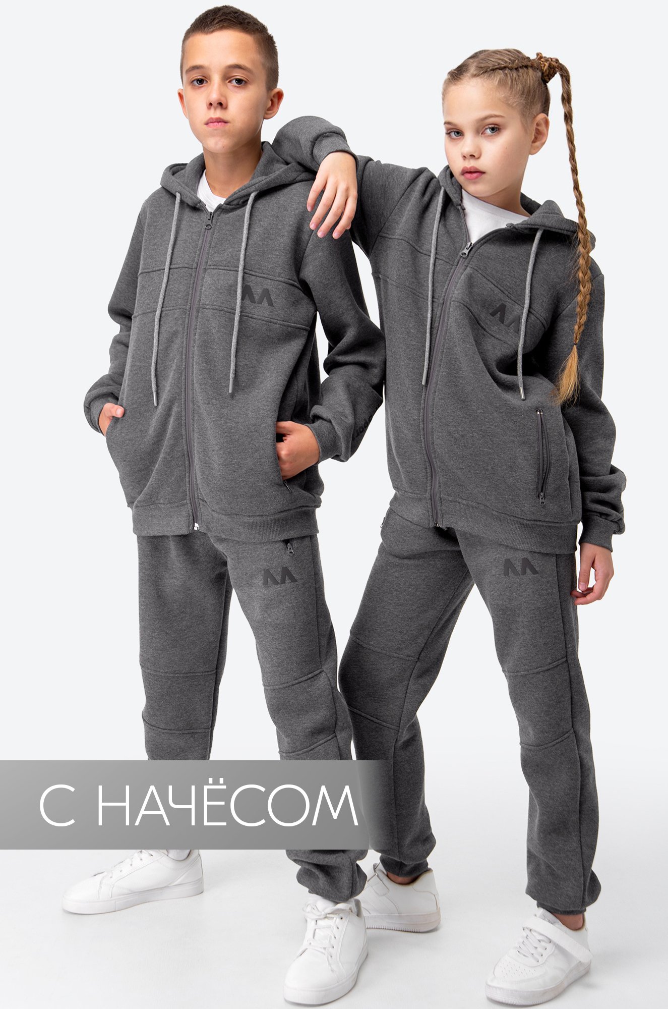 Тёплый спортивный костюм для детей — э..показатьто находка для активных прогулок и игр! Темно-серый однотонный цвет делает комплект универсальным для мальчиков и девочек, а мягкий трикотаж с начёсом дарит уют и комфорт. Утепленный детский костюм двойка станет любимым вариантом на осень, зиму и весь демисезонный период.